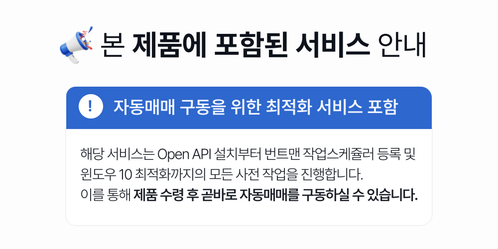 ※ 본 제품은 '번개트레이더 설치 최적화 서비스'가 포함된 제품입니다.